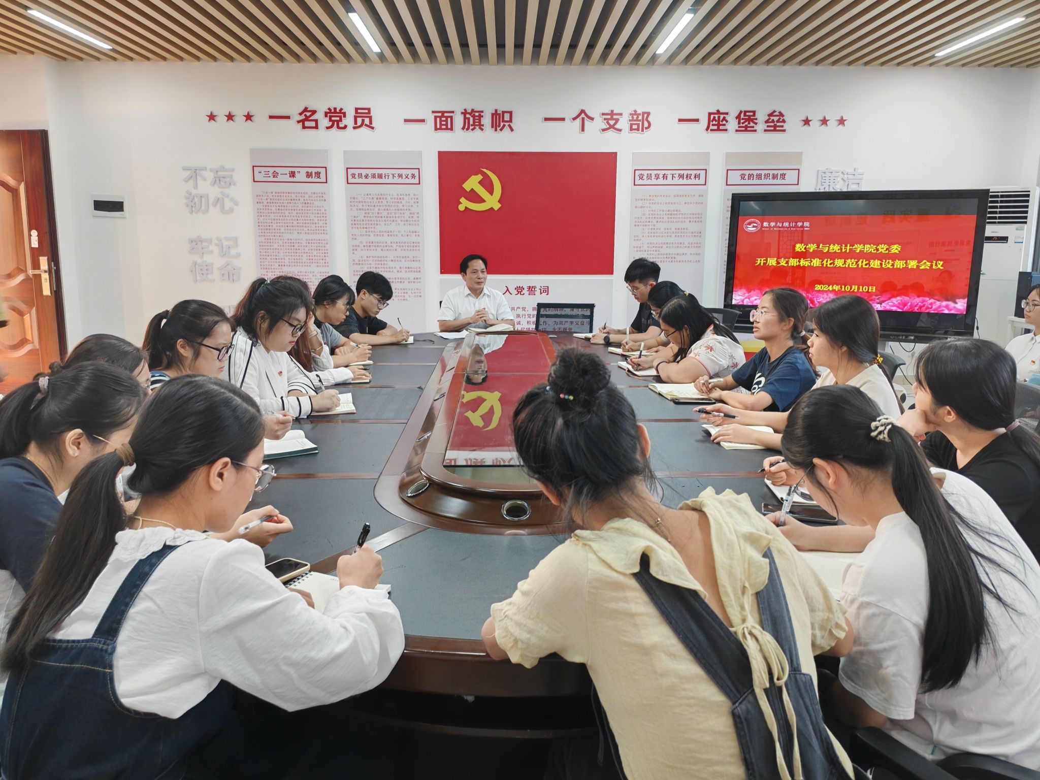 为深入推进基层党组织标准化规范化建设,提升学院党建工作质量,必威西汉姆联官网于10月10日下午在数统楼A501党员活动室召开基层党组织标准化规范化建设部署会议。学院党委余敢才书记、各支部书记、支委参加会议。