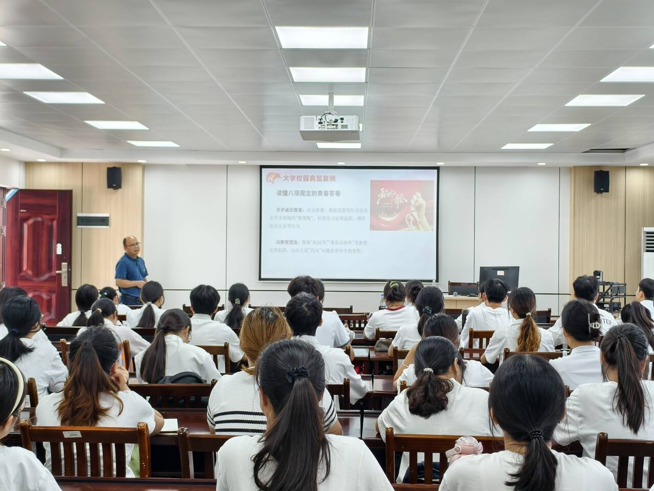 本次党课以“新时代青年的作风担当”为核心,黄院长结合大学生实际,从学术诚信、消费观塑造、网络行为规范三大维度剖析典型案例。其中特别提到,某些不文明使用网络行为导致负面舆情在社交平台恶意传播,造成恶劣社会影响,以此警示党员同志需强化责任意识,对校园矛盾隐患要及时发现、主动上报,杜绝“漠不关心”的消极态度。他要求全体党员总结党的十八大以来深入贯彻中央八项规定精神学习教育的成效经验,领会其核心要义与实践要求,把握作风建设新要求。