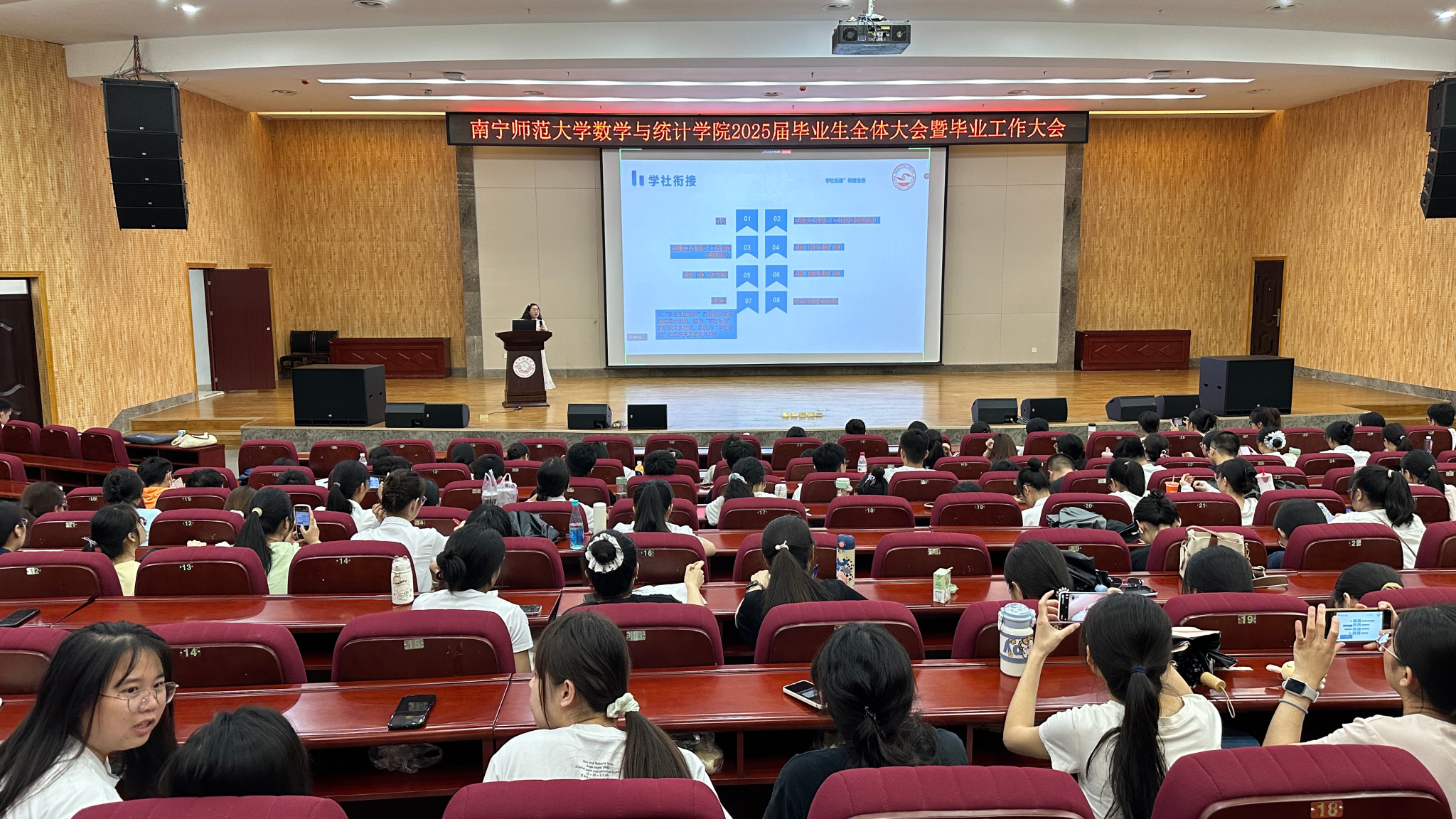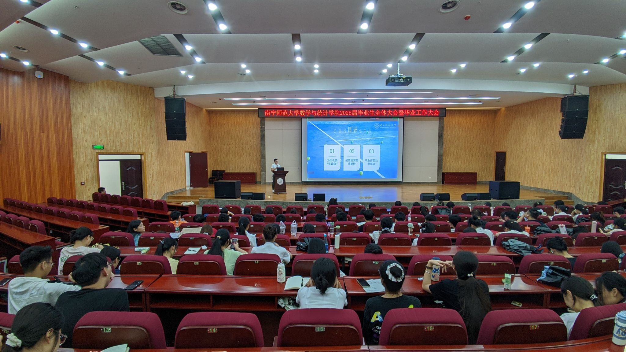 为引导学院毕业生安全、文明、有序完成毕业离校前各项工作,6月6日,必威西汉姆联官网在武鸣校区图书馆报告厅召开2025届本科毕业生工作大会,学院辅导员老师、在校毕业生参加此次大会,学院团委书记梁卡霖老师主持。