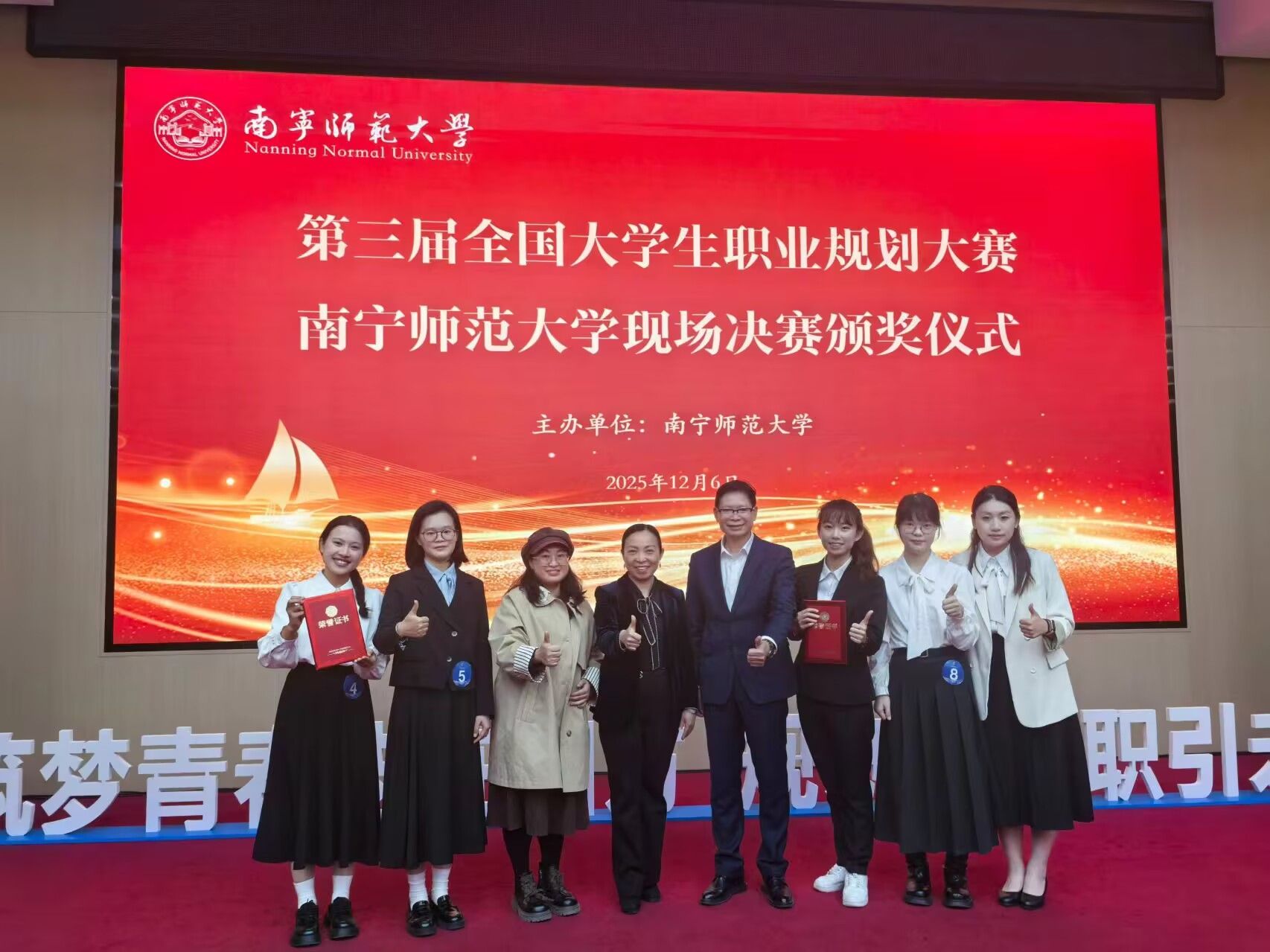 12月7日,在南宁师范大学第三届大学生职业规划大赛的现场决赛中,必威西汉姆联官网3名本科生凭借对成长路径的专业探索、自身规划的科学设计以及职业目标的清晰定位,从全校43名参赛选手中脱颖而出,最终斩获成长赛道金奖1项、就业赛道银奖1项、铜奖1项的优异成绩,充分展现了数统学院学子扎实的专业素养和积极向上的职业发展潜力。