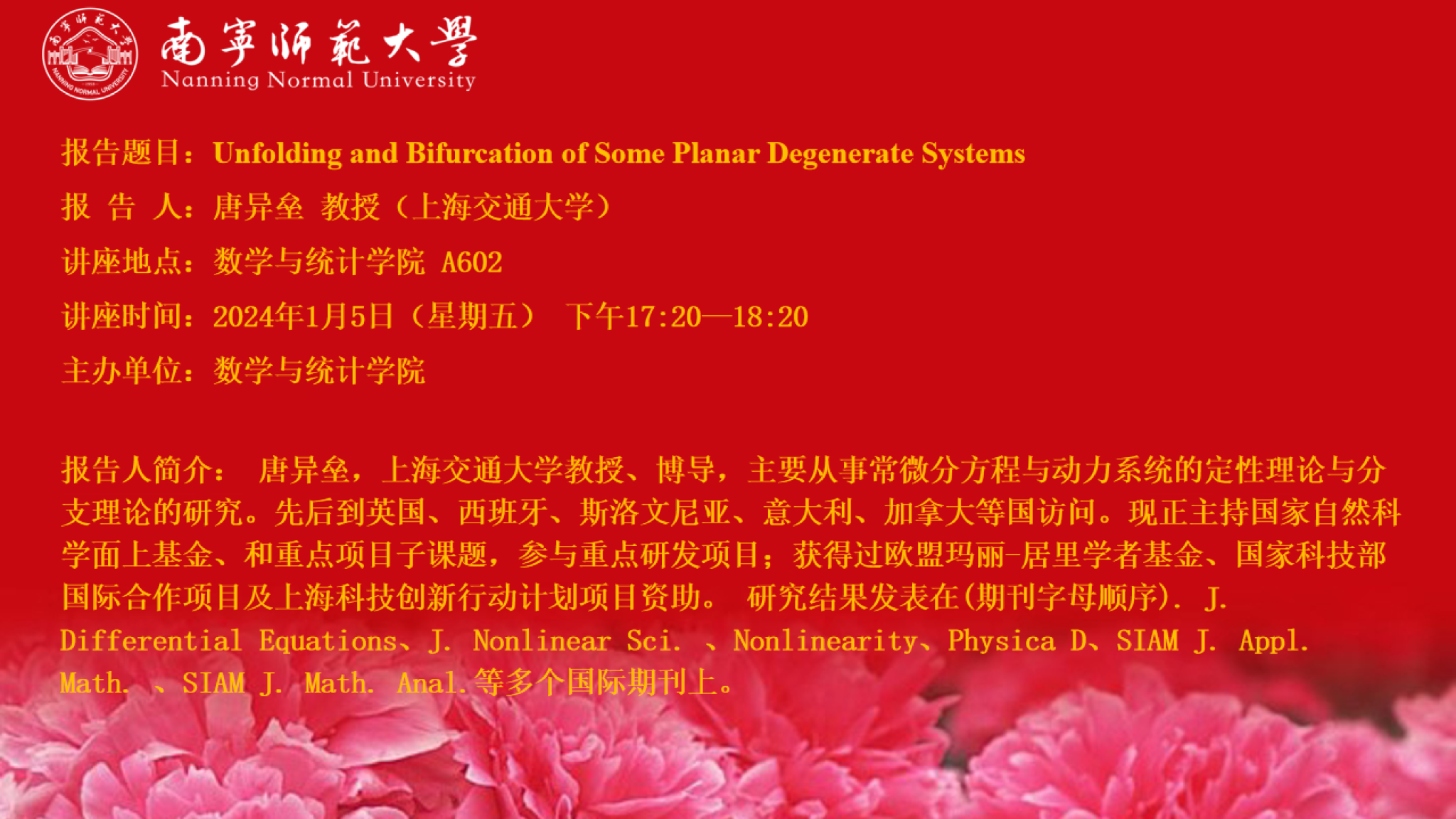 必威西汉姆联官网邀请上海交通大学唐异垒教授作报告