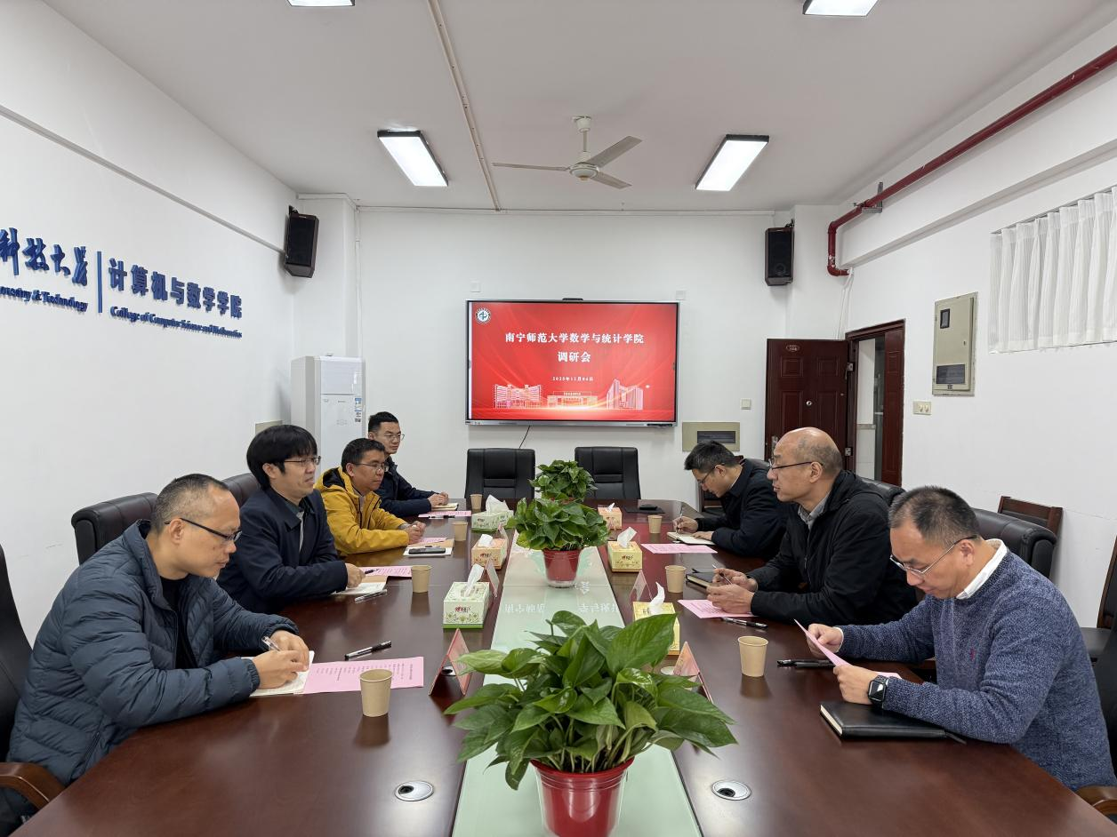 会上,李建林书记对我院一行表示欢迎,肯定两校过往合作成效,介绍了该校及学院基本情况,结合校史阐述了与广西的渊源、生源及校友联系,并表达了深化数学学科建设交流的意愿。陈红斌副院长分享了师资建设、学科竞赛、青年教师培养等教学工作经验;王传立副院长详解教学与科研融合路径,提出以赛促研、科研反哺教学的实践思路。