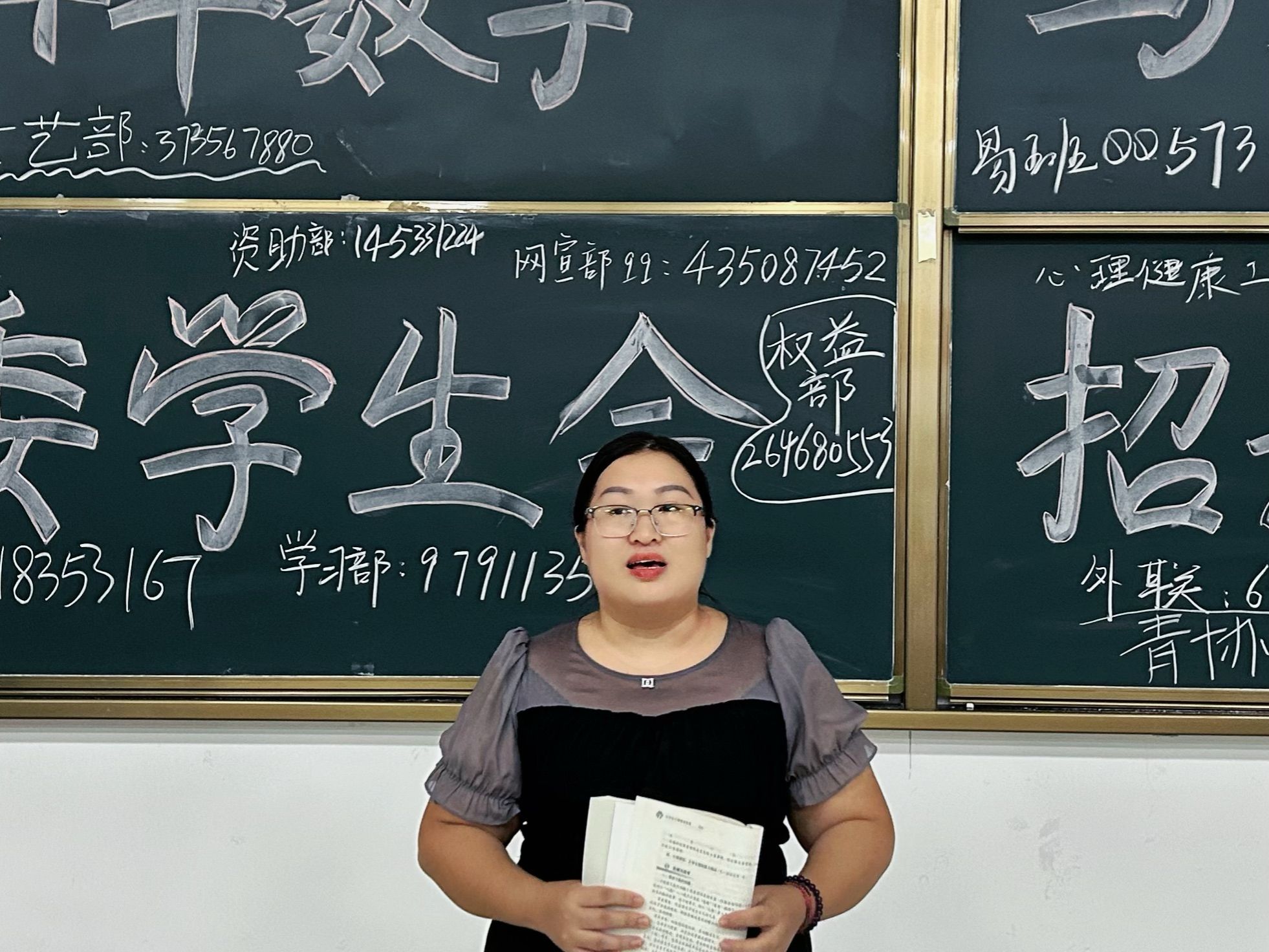 会议伊始,主持人向同学们介绍各位到场师生。随后,团委学生会各部门、两大社团、学生党建工作部和两大工作站通过精美的视频和多媒体课件展示各部门的工作特色,并讲解了招新要求。各部门负责人表示,团委学生会是联系老师和同学们的桥梁和纽带,加入团委学生会不仅能够锻炼自我,也能增强沟通协调能力,希望同学们积极挑战自我,踊跃报名。紧接着,辅导员张硕老师鼓励同学们积极加入团学队伍,明确自己的目标,增强服务意识,为学院的发展共同努力。最后,辅导员梁卡霖老师总结指出,团委学生会是充满机遇与挑战的平台,希望各位同学们能够珍惜时光,在学习工作中不断成长,培养团结力、凝聚力,在奉献中收获快乐。同学们纷纷表示想要成为团委学生会中的一员,积极与心仪的部门进一步交流和咨询。