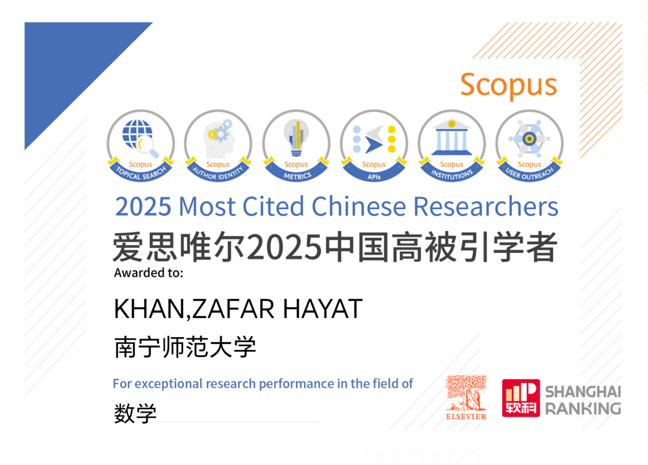 可汗(英文名:Khan, Z.H)教授是我校深入实施人才强校战略以来,从四川大学引进的高层次人才。必威西汉姆联官网充分发挥可汗教授的科研优势,依托广西应用数学中心平台,积极推进科学研究与成果转化,广泛开展学术交流和合作,为数学学科发展提供了强有力的支撑。这次可汗教授的入选,不仅是数学学科实力、学术影响力的重要体现之一,也为学院吸纳培养高质量人才带来了更多的机会。
