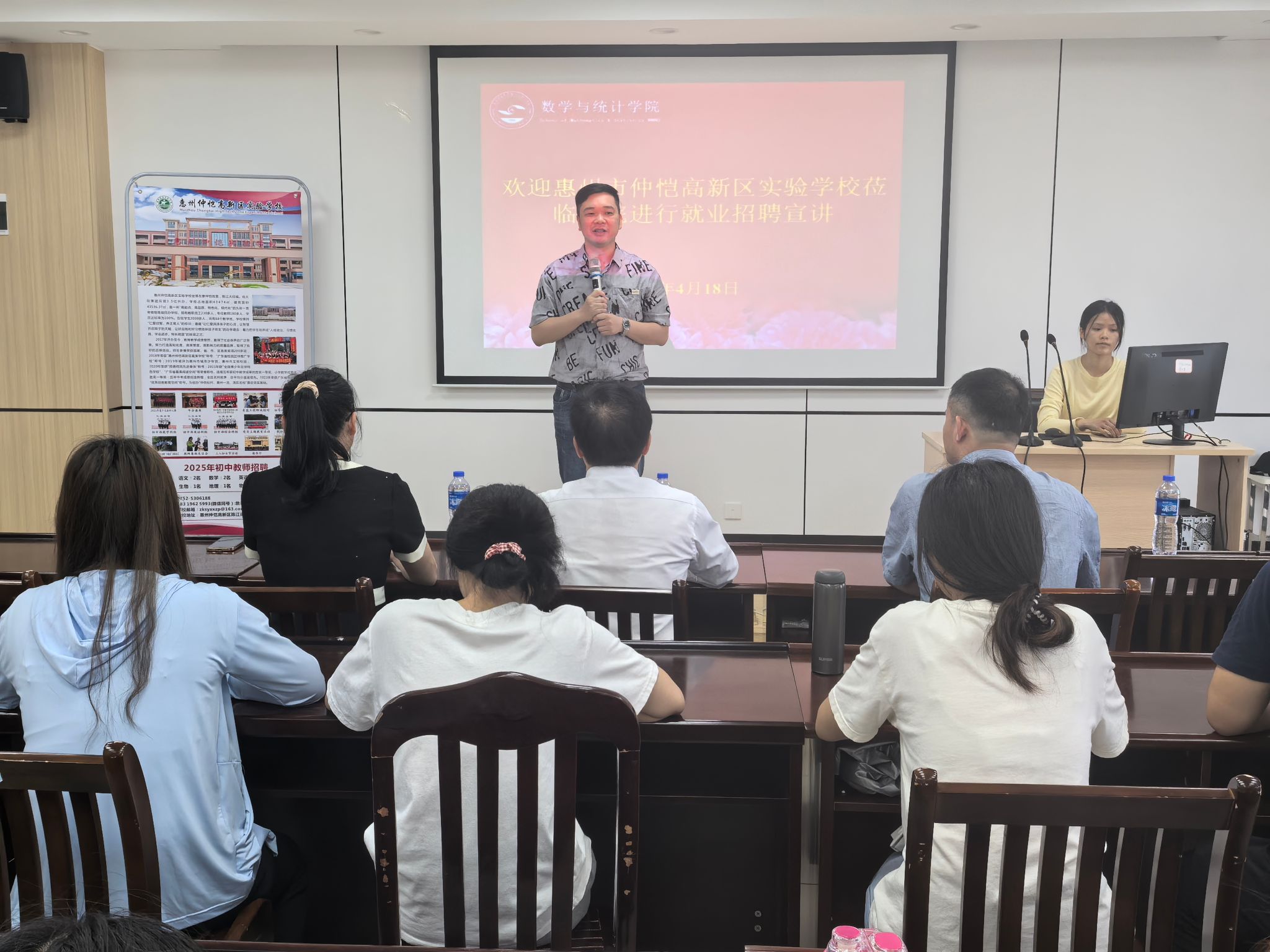 作为南宁师范大学优秀校友,惠州仲恺高新区实验学校龚副校长结合自身成长经历,分享了从教以来的心得体会,并系统介绍了该校的薪酬福利体系、教师职业发展通道及招聘流程。随后,王运秋校长通过播放学校宣传片、PPT讲解等方式,全方位展示了学校的办学特色、校园文化及发展前景,使在场学生对用人单位有了更直观的认识。在互动答疑环节,同学们就岗位要求、工作环境、晋升机制等热点问题踊跃提问,招聘单位代表一一给予详细解答。宣讲结束后,毕业生们积极投递简历,现场气氛热烈。据悉,本次招聘将采取笔试、面试相结合的方式选拔优秀人才。