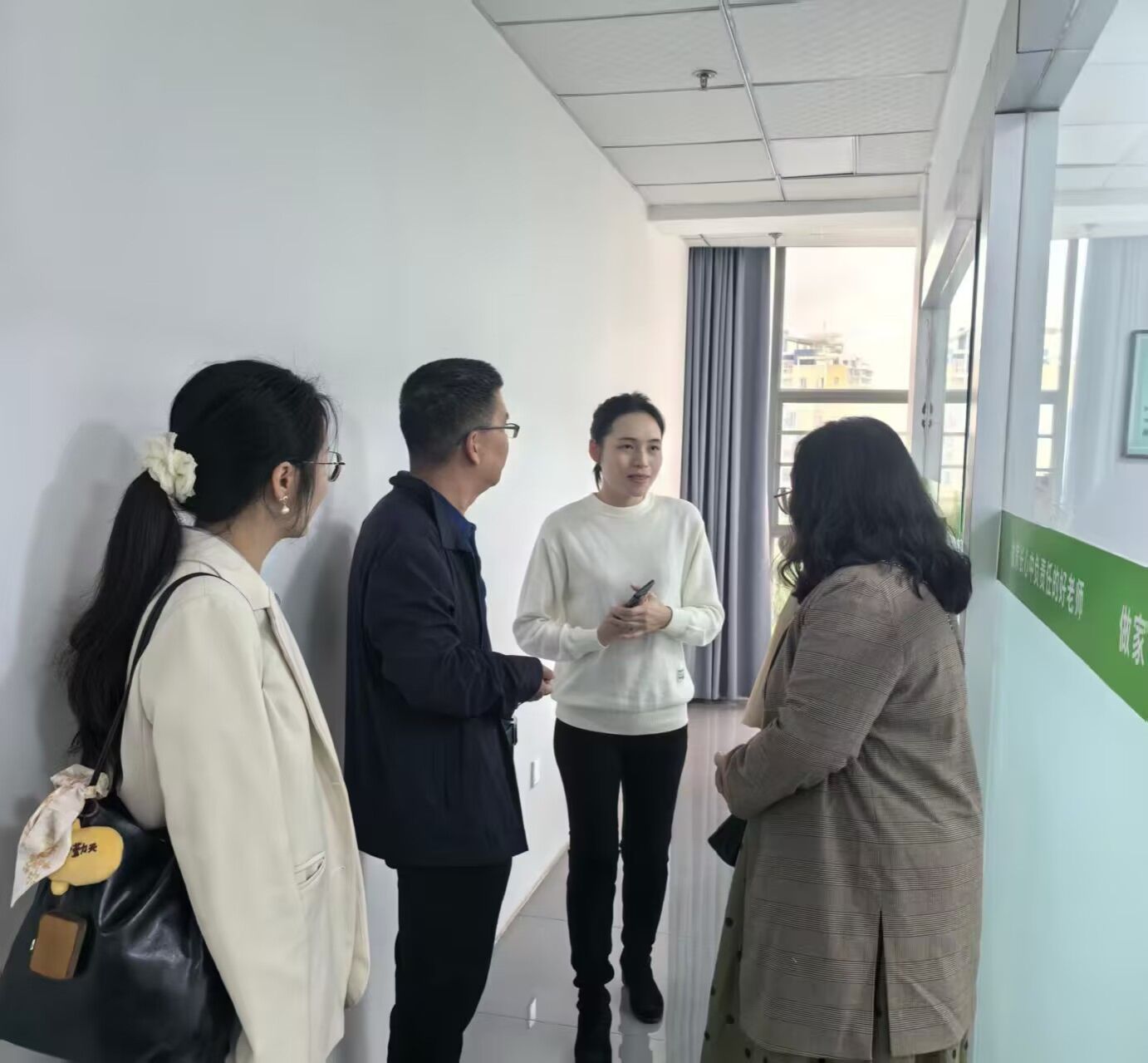 活动伊始,在陆总监的带领下,学院师生先后参观了明大教育 “三美校区” 的办公区域、一对一教学教室及教师教研场所。陆总监详细介绍了各功能区域的布局与用途,重点讲解了一对一教学模式的运作流程及教研团队的工作机制,直观展现了企业的教学环境与办学特色,让师生对明大教育的教学模式有了全面且深入的认识。