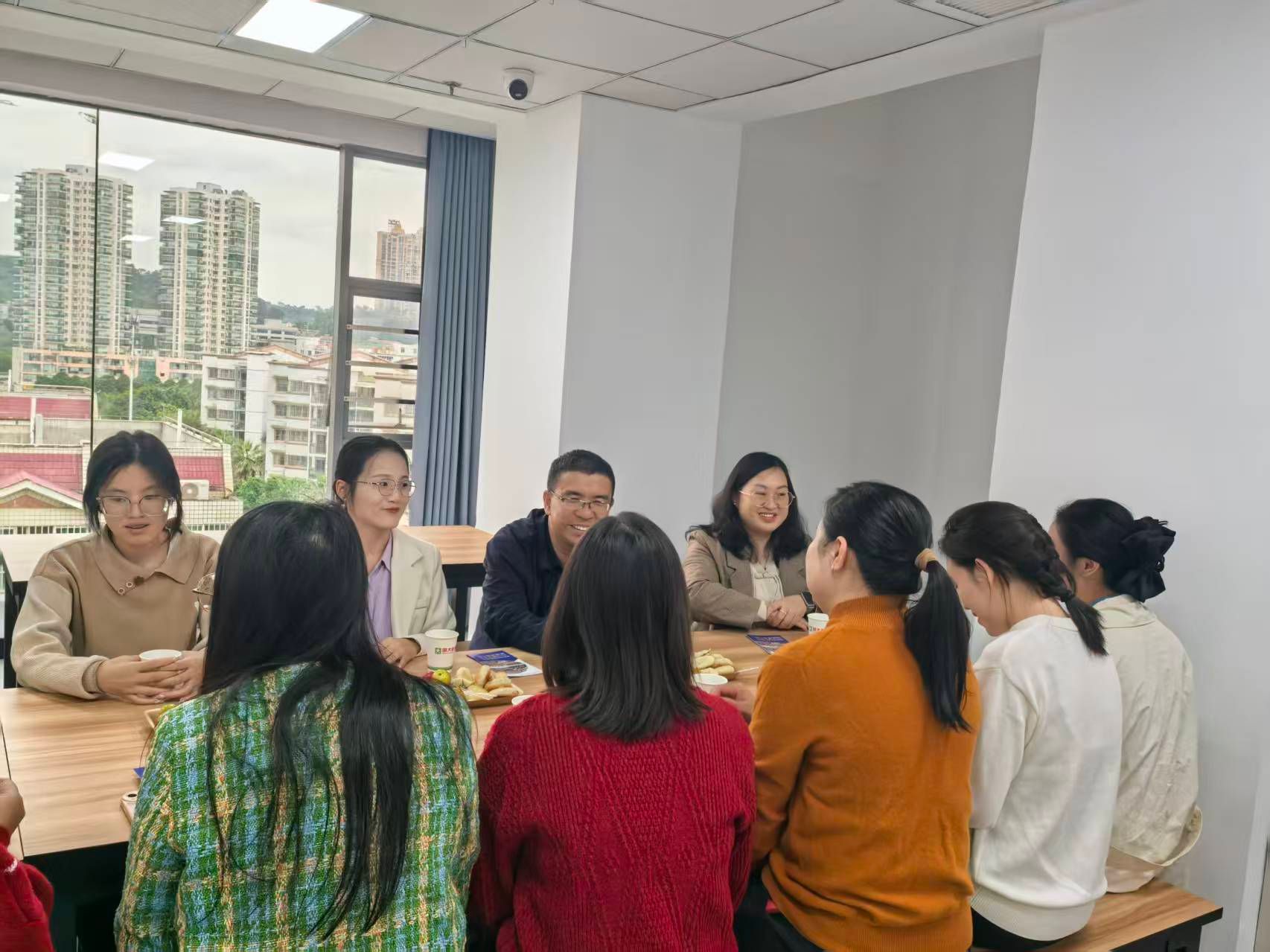 随后,双方在会议室举行座谈。陆总监及各校区教学主管首先介绍了明大教育在南宁的整体布局,目前企业已在南宁设立 6 个校区,覆盖多个核心区域;同时以学院去年入职的 2 名毕业生为例,详细讲解了企业的运营模式、核心优势及针对新教师的系统化培养体系,包括岗前培训、师徒带教、定期教研等内容。王卫彬副书记代表学院介绍了南宁师范大学必威西汉姆联官网的发展历程、专业建设成果及毕业生优势,强调学院学生具备扎实的数学专业基础与较强的实践能力,希望明大教育能走进学院开展招聘宣讲,为毕业生提供更多优质就业岗位,进一步深化校企合作。