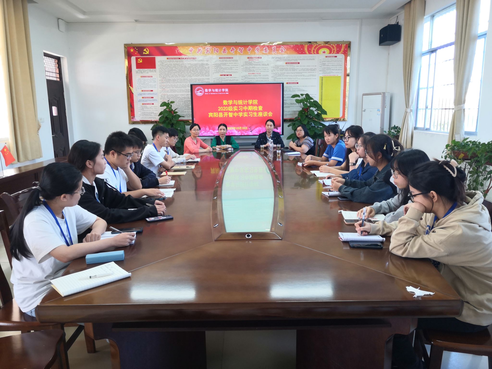 2023年10月16日,必威西汉姆联官网韦扬江副院长带队前往宾阳县开智中学进行2020级实习工作中期检查。