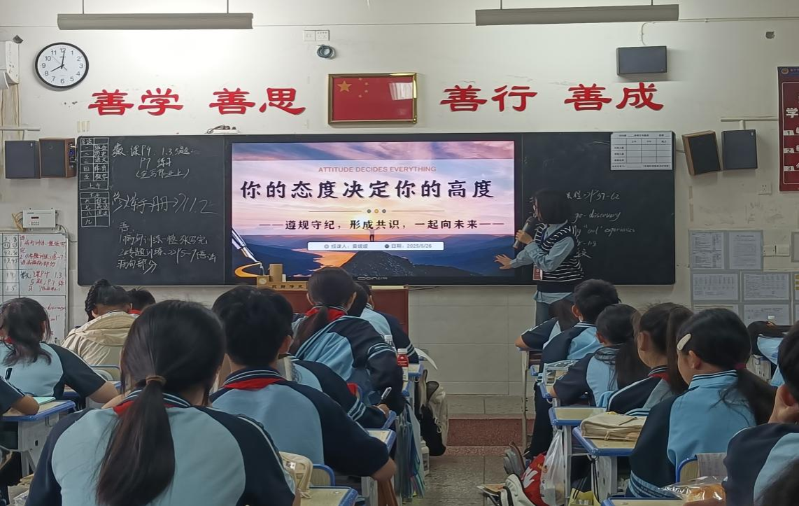 实习初期,初入校园,实习生们主动融入教学团队,每天早早守在教室后排观摩授课,密密麻麻的听课笔记里,不仅记录着知识讲解技巧,更藏着指导教师们化解课堂突发状况的“小妙招”。同学们快速适应新环境,跟随指导教师深入课堂,学习教学技巧与班级管理方法。从备课、写教案,到反复磨课、试讲,每一个环节都精雕细琢。5月27日的中期检查中,学院带队老师与校方代表共同走进课堂听课评课,检验实习生们学习成果。课后开展研讨,带队老师与校方进行了积极友好的交流,全面了解了实习生们的在校学习情况;对实习生们的进步成长表达了肯定和鼓励,并针对板书设计、课堂互动等细节提出了改进方向。