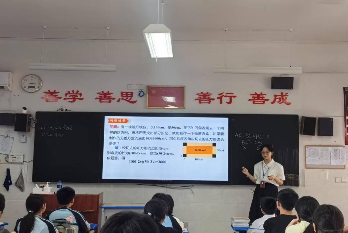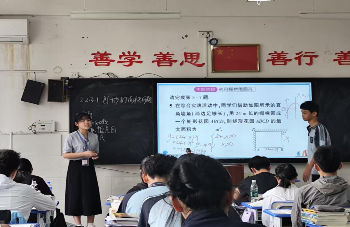 在新民中学,实习生们不仅站上讲台授课,还参与了数学文化知识辅导、课后服务等活动。通过与学生互动,他们学会因材施教,灵活调整教学策略;在处理班级突发情况中,提升了沟通与应急能力。