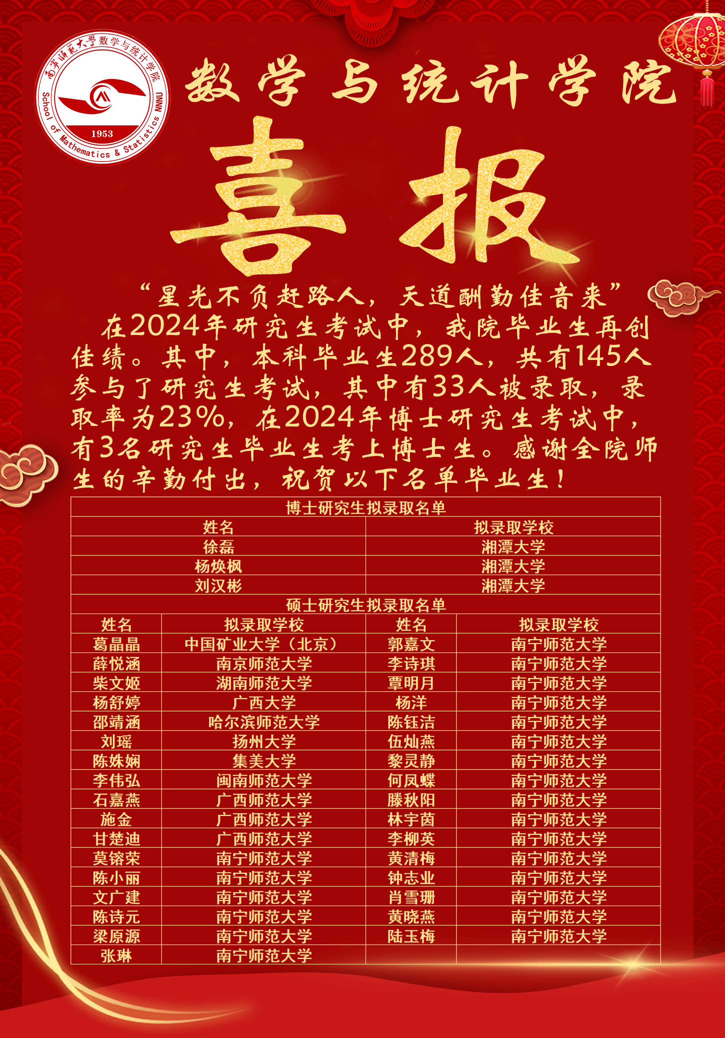 喜报丨热烈祝贺我院33名学子考研成功!