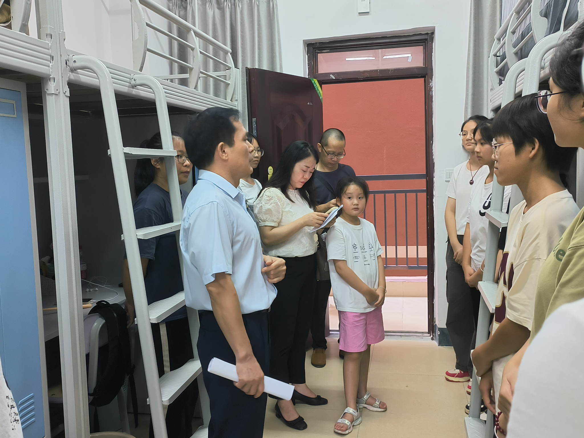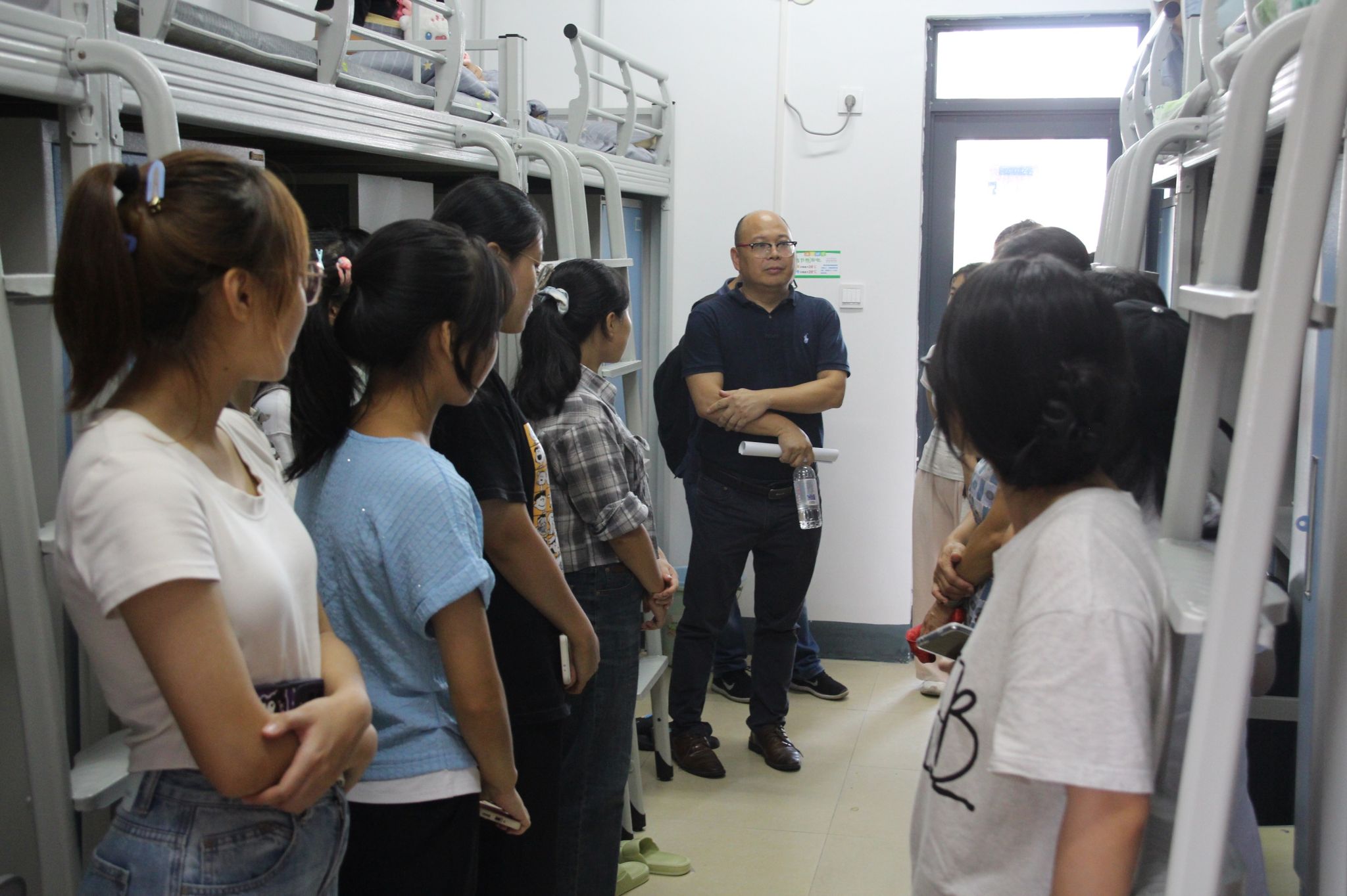 在走访过程中,该院领导和老师们与同学们亲切交谈,详细询问同学们来校后的感受、新环境的适应程度、学习规划等。老师们向新生介绍了学院的基本情况、专业特色以及未来的就业方向等。余敢才书记指出,同学们要主动熟悉校园环境,深入了解校园文化,适应校园生活,不断完善丰富自己的履历,提高核心竞争力。余书记希望同学们能将“小我”融入“大我”,用奋斗擦亮青春底色,不负时代,不负青春。黄在堂院长强调了大学学习规划的重要性,希望同学们养成良好的生活习惯,扎实学好专业知识,提升综合素养,全面发展。付进副书记要求同学们严格遵守学校的规章制度,建立融洽的宿舍人际关系,营造团结和谐的宿舍氛围;要主动适应大学生活,积极主动参加学校、学院的各类活动,在活动中提升自我;要时刻树牢反诈防骗意识,杜绝安全隐患。韦扬江副院长从学习目标树立、优良班风建设、加强与科任老师的沟通等方面提出要求。