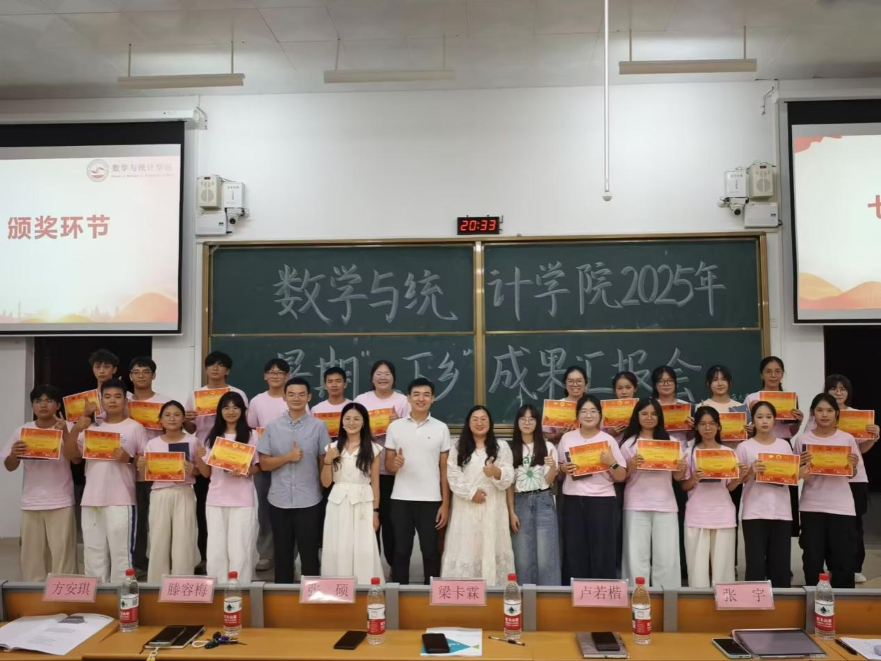 此次成果汇报会不仅是对“三下乡”实践的系统性梳理,更有效激发了数统学子投身乡村振兴与教育帮扶的主动性,为学院深化实践育人内涵、构建实践育人体系写下了生动注脚。